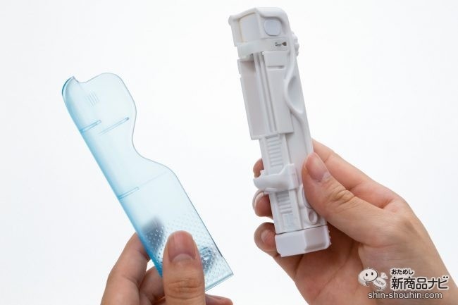 使用前にブルーのカバー部分を外し、単4アルカリ乾電池を本体に入れたら準備完了だ。