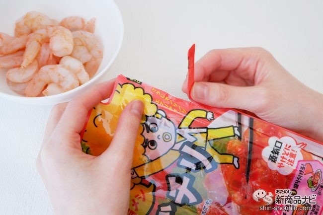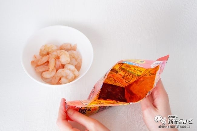 用意するのは、むきえび250gのみ。冷凍エビの場合は、解凍してから使用しよう。