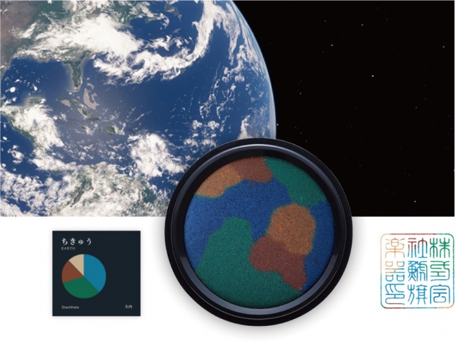 色々な色を生み出す原点として、色々な考え方や捉え方を内包する象徴として捉えて、新色「地球」は企画されたそうです。色の異なる2色の茶色と緑、水色の4色を使用し、地球本来の自然の豊かさを表現しています。