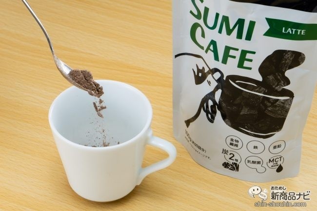 続いて『SUMI CAFE ラテ』をためしてみた。パウダーはさらさらできめ細かく、色はブラウン。ほんのり甘いいい香りがする。