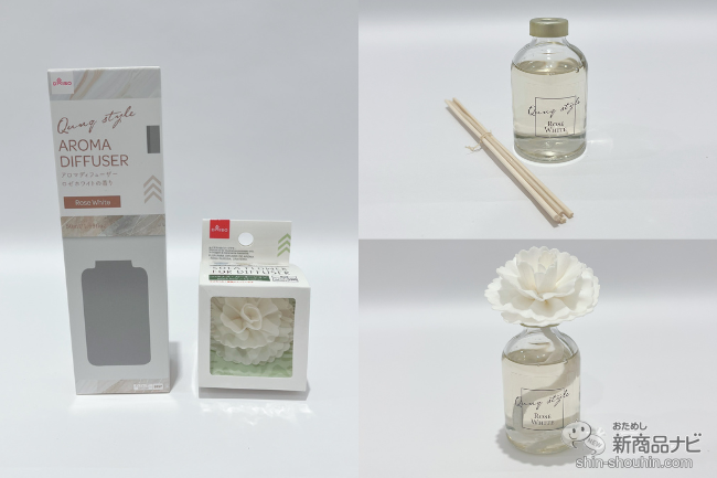 お部屋やトイレ、玄関に香りをふんわり広げてくれるディフューザーが登場。今回はソラフラワーとロゼホワイトの香りがするアロマディフューザーを購入。