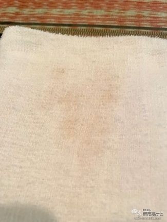 近寄ってみても、うっすらと茶色い跡が見えるくらい。じっと凝視しないとわからないかも。続いては、補助洗剤としてためしてみる。
