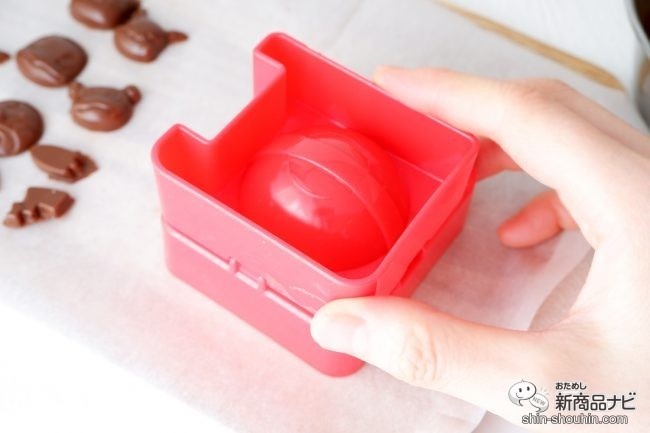 チョコを入れたら、モンスターボール型を閉める。そのまま30分ほど冷蔵庫に入れて、固まったチョコレートを取り外せば完成だ。
