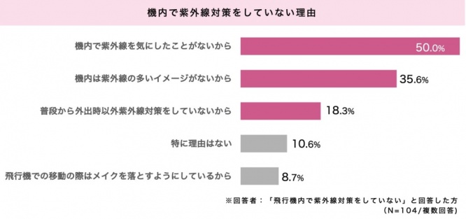 さらに、⾶⾏機内で紫外線対策をしていないと回答した⼈に対して「⾶⾏機内で紫外線対策をしていない理由」についても質問。