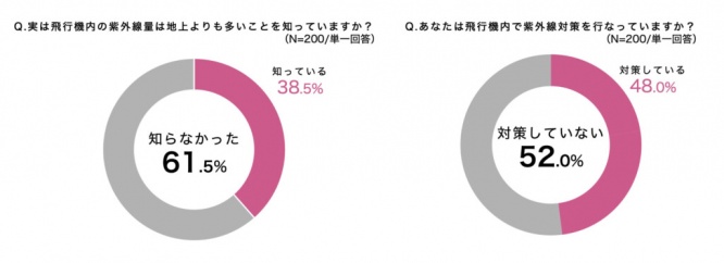 すると、「機内で紫外線を気にしたことがない」「機内は紫外線が多いイメージがない」などの結果が得られた。