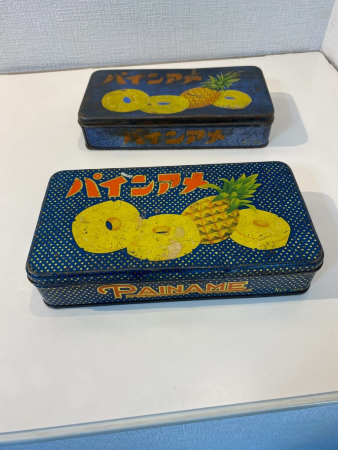大切に使っていただいた今回提供されたものは、1951年~55年に生産されたもので、パイン株式会社に変更前の業平(なりひら)製菓時代のものだ。