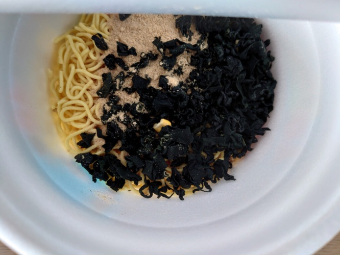 かやくとスープをカップ麺に入れると、かなりのスペースがわかめで埋まってしまうほどだった。