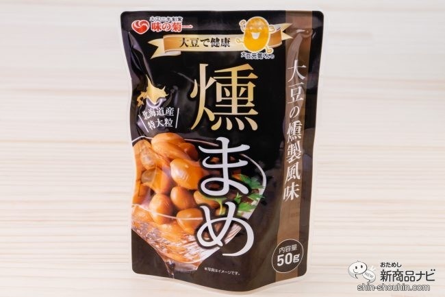 菊池食品工業『燻まめ』佃煮や煮豆、惣菜、黒豆エキス、おせち料理の製造・販売を手掛ける菊池食品工業(東京都)の『燻まめ』(50g・希望小売価格 税込138円・発売中)は、北海道・道南地方で生産された大粒の黄大豆「ゆめのつる」を燻製風味に仕上げたおつまみ。