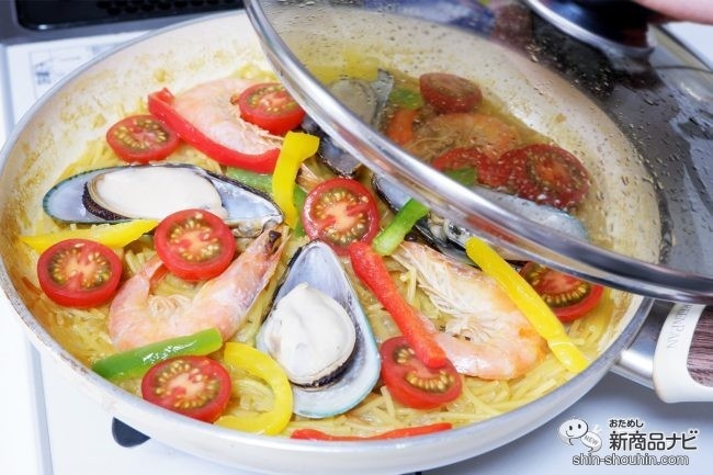 パスタが魚介の旨みをしっかり吸って、美味しい上に新食感。こんなに本格的な料理が短時間で出来上がるなんて驚きだ。