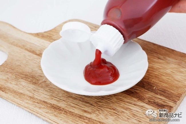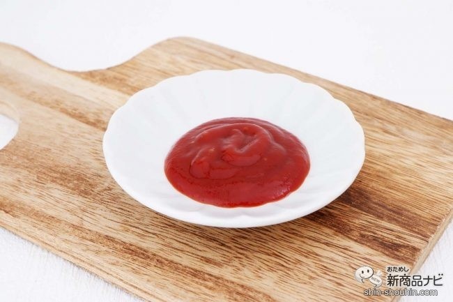 ゆるくとろみのあるトマトケチャップ。真っ赤で鮮やかなこの色合いからも素材のよさを感じられる。トマトの香りも華やかだ。