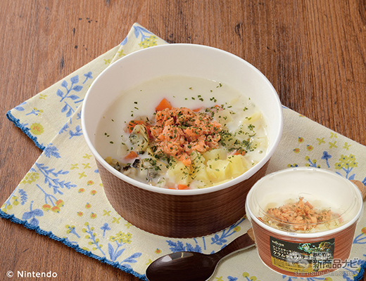 ゲーム内に登場する「マックスサーモン」と「フレッシュミルク」をイメージしたメニューで、具沢山で体力マックスになるよに仕立てたクラムチャウダー。
