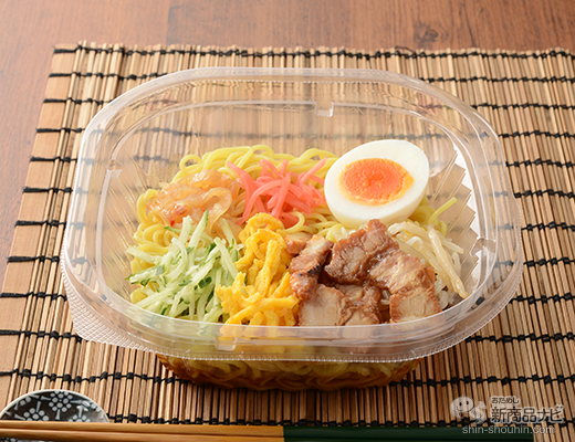 柑橘の爽やかな酸味仕立てのスープに、たまご麺を合わせた冷やし中華。8種の具材が楽しめる一品。