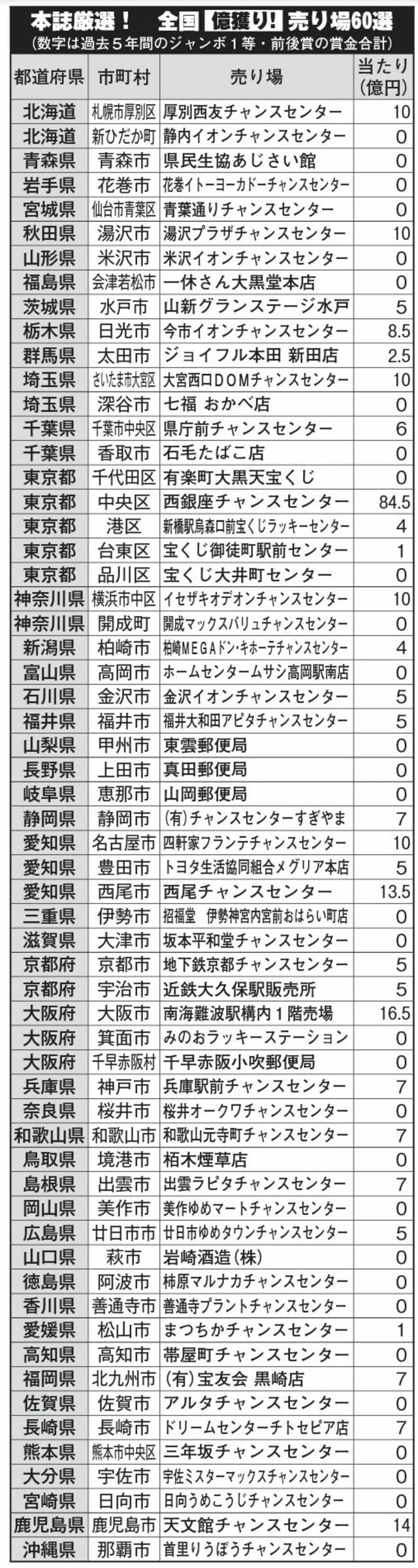 億獲り応援!総力ガイド「ドリームジャンボ宝くじ」全国5億円ゲット売り場60!高額当せん者が明かす「当たる」極意とは?【画像】本誌厳選!全国「億獲り!」売り場リスト60選