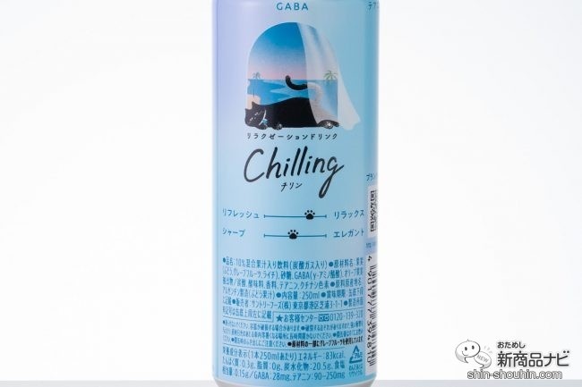 甘さ、苦味、酸味のフレーバーの違いによって、癒され方を選べる「Chilling-チリン-」。いずれもほどよい甘さや苦味で、優しく癒してくれた。今日は身体も心もしっかり休めてふニャ~と脱力しよう。