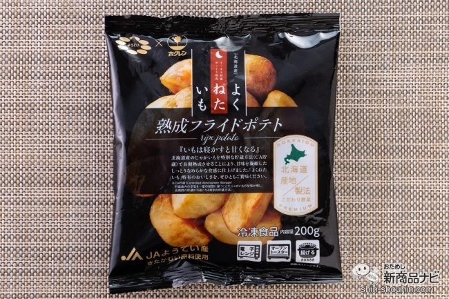 「熟成フライドポテト」は電子レンジ調理が可能なので、揚げる時間がなくともおやつやおつまみにも手軽に食べられるのが特徴で、一般のフライドポテトとは違い冷めても美味しい。むしろ冷めたほうがより甘みを感じる気がする。また、無塩で味付けはされておらず、素材そのものの味を楽しんで貰えるようにとこだわっている。