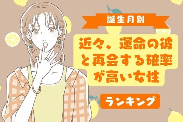 あなたには、過去に出会ったけれどもう一度会いたいと思っている男性がいませんか?もしかしたら、その男性はあなたの運命の彼かもしれません。この記事では、誕生月別に「近々、運命の彼と再会する確率が高い女性」をランキング形式でご紹介します。