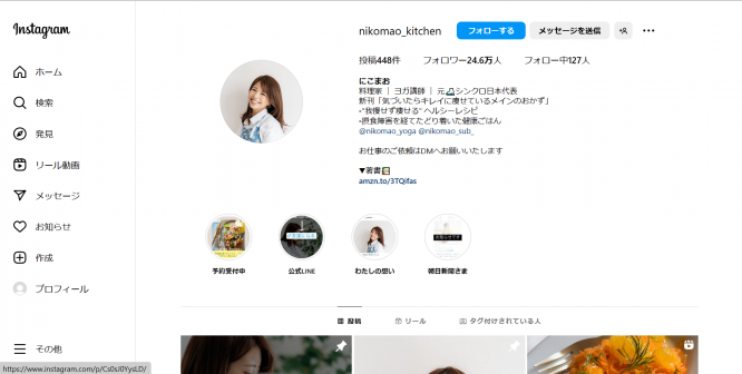 2023年6月15日、KADOKAWAから、新刊『気づいたらキレイにやせている! メインのおかず』が発売された。著者はヨガインストラクターのにこまお氏。同書では、元フィギュアスケーターでもあるにこまお氏が現役時代に実践していた食事から考えた、高たんぱく・低脂肪の食材を使ったヘルシーレシピを紹介。「わかめ水餃子」や「牛肉としらたきのチャプチェ」「タンドリーチキン」など、毎日食べても飽きない絶品レシピが満載だ。副菜カタログのページもついている。
