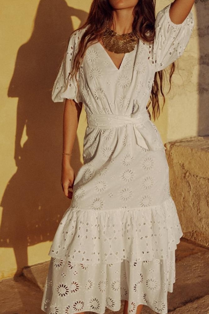 ボリューム感たっぷりで贅沢なフォルムの刺しゅう入りワンピ―ス。