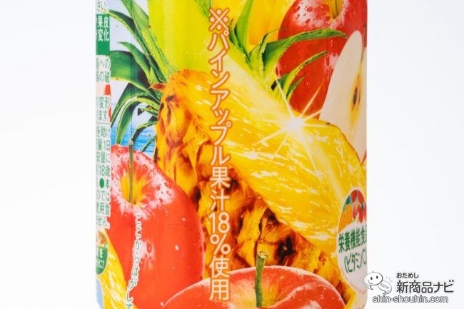 アップルをベースに、パインアップル果汁を18%使用し、濃厚な甘味と香りを楽しめるようにブレンドされている。また、ビタミンCを加えた栄養機能食品であり、1本当たり170~750mg配合しているのもポイント。夏はビタミンCが不足しやすい季節とも言われているため、普段の食事にプラスして摂取するのにぴったりだ。
