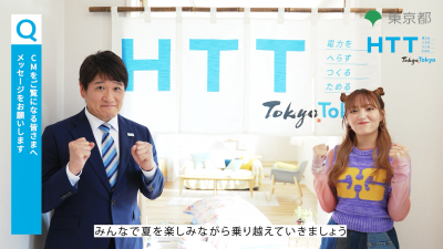 東京都では、気候危機への対応だけでなく、中長期的にエネルギーの安定確保につなげる観点から、電力を「(H)へらす・(T)つくる・(T)ためる」=「HTT」をキーワードに、節電をはじめとした電力確保の取組を進めています。本TV-CMでは、この「HTT」をキーワードに、節電対策や省エネ家電等への買い替えといった各家庭でできるアクションの実行を促しています。