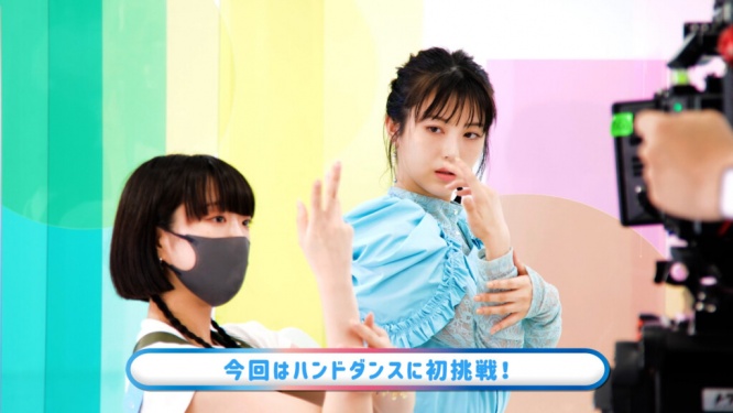 CMにも使用している可愛らしく、キャッチーな音楽が流れるスタジオで、ハンドダンスや手品の撮影を行った。