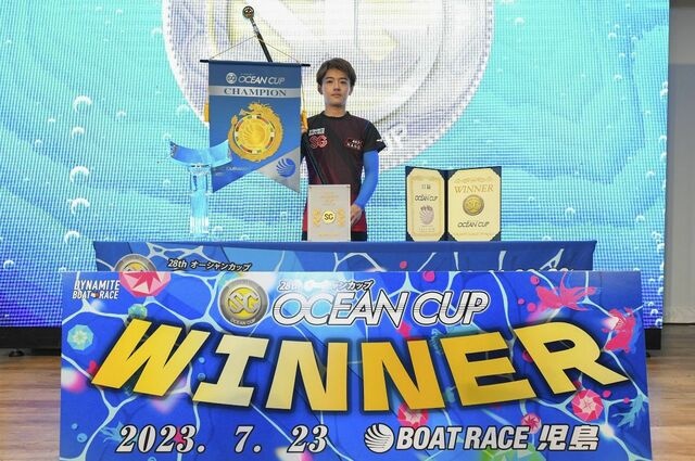 7月23日、ボートレース児島でSG(スペシャルグレード)オーシャンカップの優勝戦が行われました。これを制したのは、福岡支部の羽野直也選手(はのなおや 登録番号4831 114期 1995年3月29日生まれ 身長167センチ 血液型AB型)でした!
