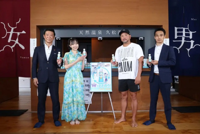 銭湯・サウナ好きのタレント須田亜香里さんたち登場プロジェクトの発表会は、8月8日に天然温泉久松湯で開催され、銭湯・サウナ好きのタレント須田亜香里さんやプロサウナーのサウナ師匠(秋山大輔さん)がゲストとして招かれた。