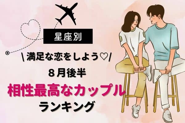 そこで今回は12星座別に、8月後半に相性が最高なカップルをランキング形式でご紹介します。 あなたの星座と相手の星座がランクインしているかどうか、ぜひチェックしてみてくださいね。