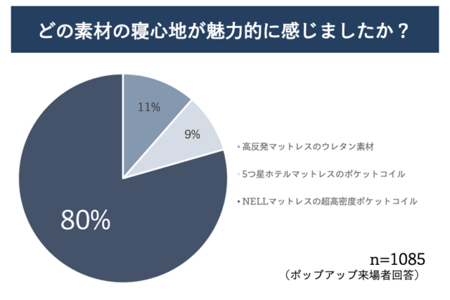 実際に寝転んだ方々にアンケートを行った結果、ウレタンマットレスが349票、ポケットコイル(NELL)マットレスが750票という結果に。