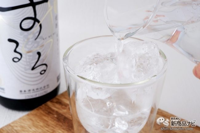 まずは定番のロックから。米のお酒というと、どうしても日本酒との違いが気になるところだが、醸造と蒸留の違いは如実に現れており、日本酒の重厚さよりも米焼酎の爽やかさを好むという人も多いだろう。商品名どおり「するる」という飲み口が魅力だ。