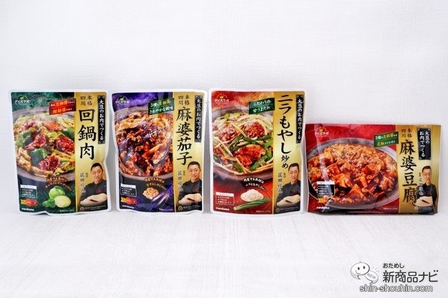 大豆のお肉を使って本格中華の四川料理がパパッと作れる惣菜の素『ダイズラボ 菰⽥欣也監修』シリーズが登場。「回鍋肉」、「麻婆茄子」、「ニラもやし炒め」、「麻婆豆腐」の4商品がラインナップ。話題の大豆のお肉を使って、簡単に美味しく作れるのがポイントだ。本格的な辛さを楽しみたい人にもおすすめのシリーズ。