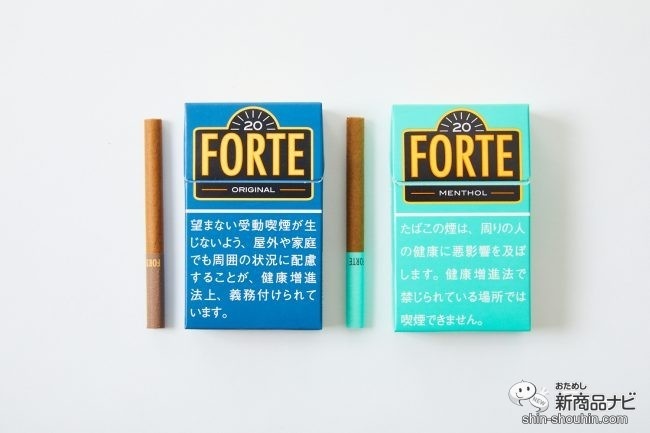 『フォルテ』シリーズの定番商品「オリジナル」(左)と「メンソール」(右)この『フォルテ』シリーズは、定番の「オリジナル」「メンソール」のほか、「ライト」「エクストラライト」「エクストラライトメンソール」の3種を加えた計5種類がラインナップされている。