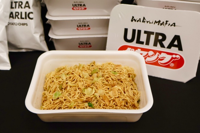 登壇者3名のトークセッション中、「ULTRA PEYOUNG」を試食させてもらったのだが、目の前に提供された途端、食欲を刺激する芳ばしいガーリックの香りが。口に含むと、これまたガーリックの香りが強烈にするのだが、ペヤングの懐かしい味わいも同居していた。ジャンキーなものを欲しているときには、もってこいの商品である。 「ULTRA PEYOUNG」350円と、昨年より好評の「ポテトチップス ULTRA GARLIC」198円、「ULTRA HIGHBALL」228円は、12月5日より全国のファミリーマートにて販売される。おすすめの楽しみ方は、「ポテトチップス ULTRA GARLIC」を砕いて「ULTRA PEYOUNG」に振りかける食べ方だそうだ。後の予定には注意しつつ、ぜひとも豪快なガーリックの味わいを堪能してほしい。