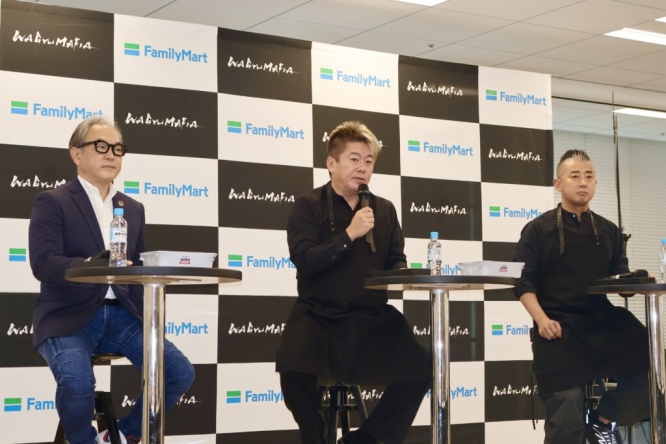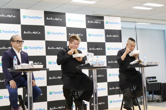 本イベントでは、ファミリーマートマーケティング本部長の足立光氏に加え、「WAGYUMAFIA」の創業者である実業家の堀江貴文氏とシェフの浜田寿人氏が登壇。新商品の開発経緯や商品の魅力などを話した。