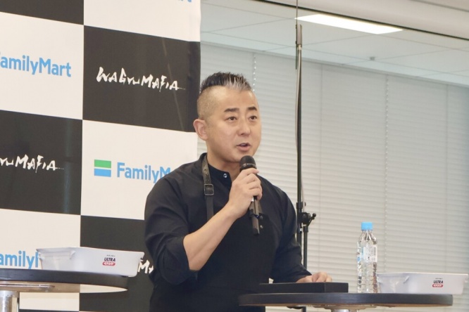 12月4日、ファミリーマートが都内本社にて、会員制和牛専門店「WAGYUMAFIA」とまるか食品「ペヤングやきそば」とのコラボ新商品「ULTRA PEYOUNG」の発表会を開催した。