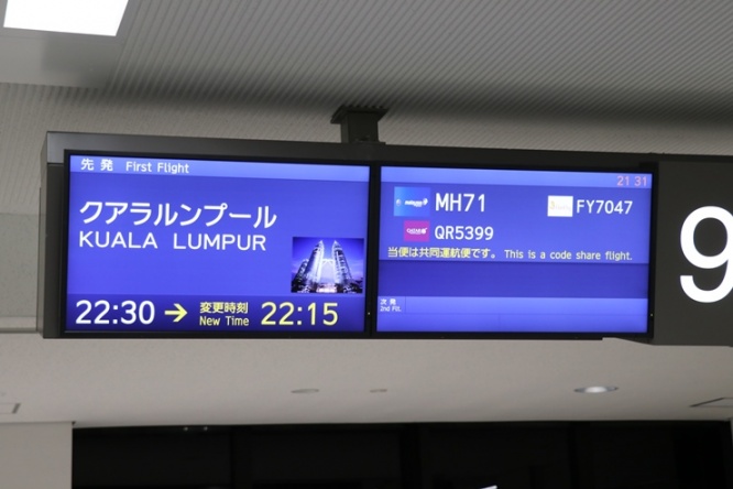成田空港からMH71便にてクアラルンプール空港へマレーシア航空 MH71便は、22時30分に成田国際空港を飛び立ち、現地時間で翌朝5時25分にクアラルンプール国際空港に到着するスケジュールです。日本とマレーシアの時差は1時間(日本のほうが1時間早い)なので、フライト時間はおよそ8時間。仕事終わりに飛行機に乗れば翌日早朝に到着するので、日数の少ない旅行でも時間を有効活用できます。