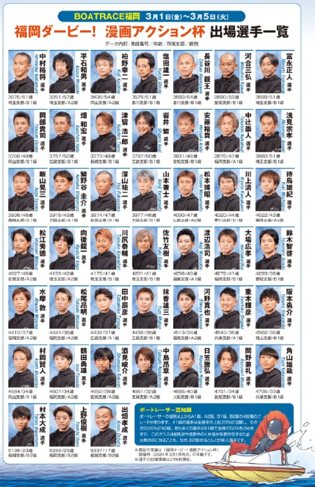 漫画アクション×BOATRACE福岡「福岡ダービー!漫画アクション杯」直前情報