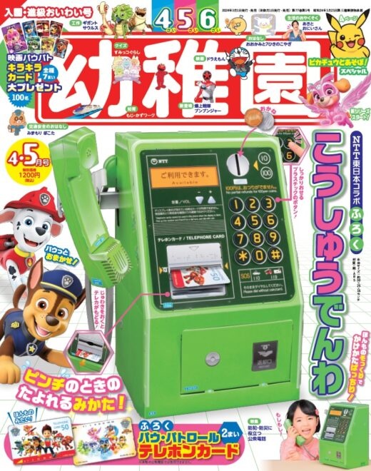 実はこの付録、4年前の2020年にも『幼稚園』の付録になっているのですが、4年の時を経てパワーアップ。2024年の「こうしゅうでんわ」付録には、『幼稚園』読者に人気の「パウ・パトロール」デザインの本物そっくりな紙製テレホンカードが2枚付いてきます。