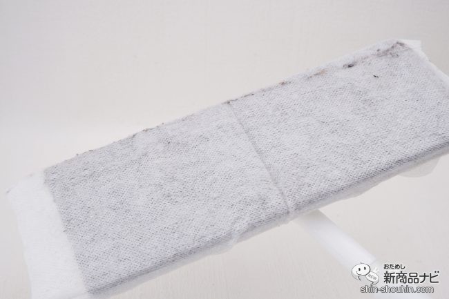 う~ん、やはり掃除機だけでは取りきれないホコリや汚れが残っていた。特にキッチンの床は、油が飛び散っていることが多く、乾拭きや、単なる水拭きでは取れない汚れ。『ウェットワイパーシュ!シュ!』は、そんな汚れもしっかりキャッチしてくれて頼もしい。