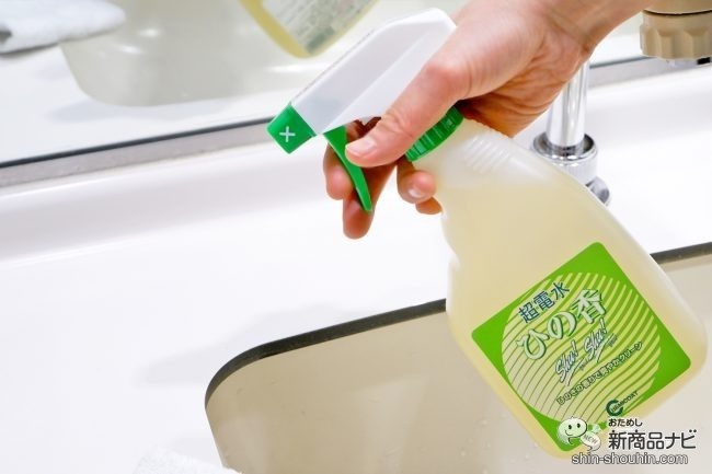 電解アルカリ水と天然のヒノキオイルでできた『超電水 ひの香シュ!シュ!』は、同社HPにて発売中。