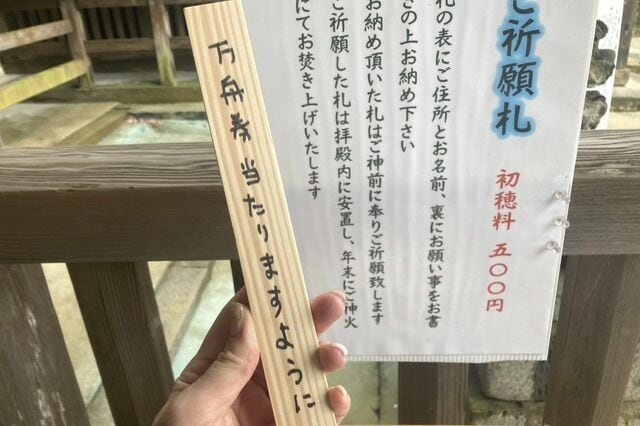 続いてやってきたのは、加部島にある田島神社。ここも峰くんがロケで行った神社で、陸や海の交通安全にご利益があるのだとか。ここでお参りすれば、私の的中率も上がる気がする! ご祈願札に「万舟券を当てられますように」と書いてバッチリ! さて、いざ決戦の場へ……。