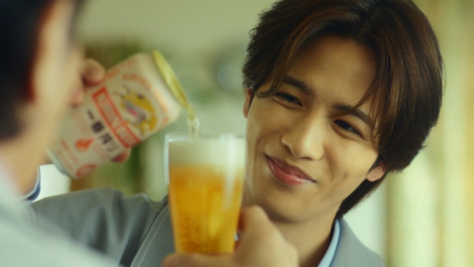 【志尊】:まさか「一番搾り」のCMに出させてもらえるとは思っていなかったので、ただただうれしいですし、早く完成したCMを見たいなという気持ちでいっぱいです。