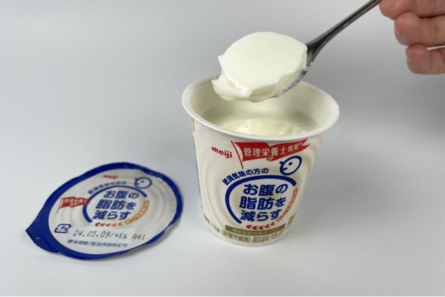 食感は固めであるがみずみずしさがあり、甘さは無く、酸味もほとんどない。口当たりも後味も非常にさっぱりしている。砂糖は不使用であるが、糖類4.1g、脂質1.6g、たんぱく質4.0g、カルシウムも含まれている。管理栄養士が推奨し、機能性関与成分であるOLL2712株(MI-2乳酸菌)56億個を配合しており、お腹の脂肪を減らす機能性表示食品である。カロリーは112g当たり56kcalと低く、ターゲットやメッセージが明確であり、1g当たり1.24円とコストパフォーマンスも優れている。