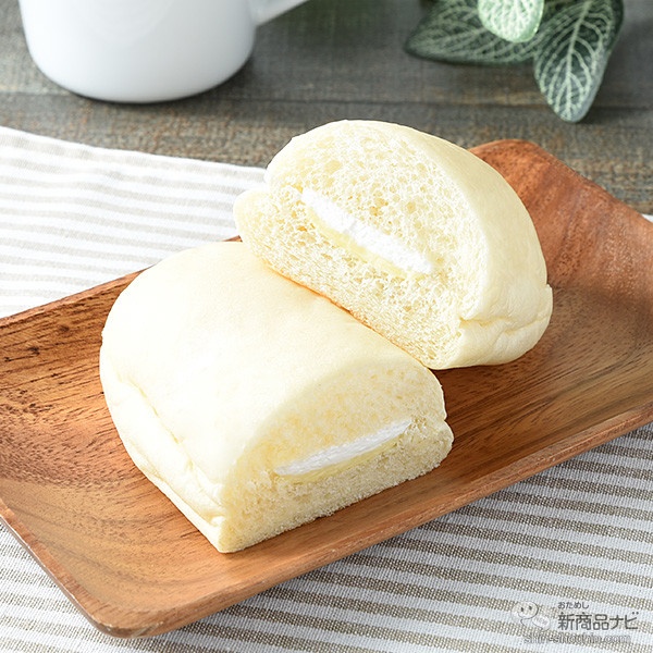 生クリームを加えた白いコッペパンに、バナナクリームとミルクホイップをサンド。