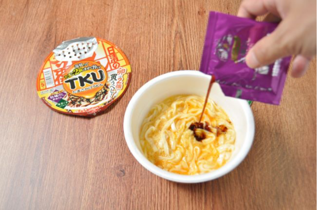 話題のたまごかけ麺が登場! 『日清のどん兵衛 TKU たまごかけうどん』をおためしレビュー (2/3ページ) 2024.07.19 08:00 おためし新商品ナビ タグ: どん兵衛TKUたまごかけうどん たまごかけ麺 どん兵衛 まずはパッケージの記載通り「卵」を2個用意した。海苔ごまふりかけとトリュフ香る牡蠣だし醤油だれが付属している。 内側の線まで熱湯を注いで5分待つ。 5分経ったら湯切り口部分のフタを剥がし、お湯を捨てたら生卵を2個入れる。 生卵と麺をよくかき混ぜて、 トリュフ香る牡蠣だし醤油だれをかけよう。 もう一度かき混ぜる。 次のページへ <<前へ 123 次へ>>