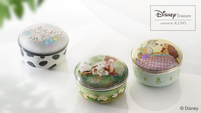 そんな七宝で、ディズニー・アニメーションのクラシック作品の素敵な瞬間を繊細に表現したのが、『Hosekibako / 七宝宝石箱』。七宝作家 菊地貴子氏とのコラボレーションアイテムとなります。
