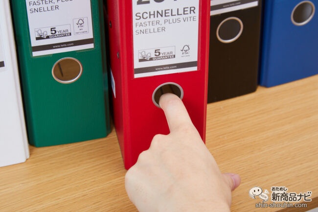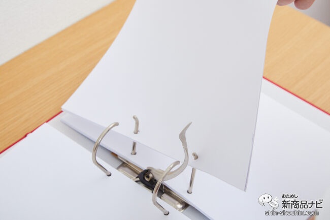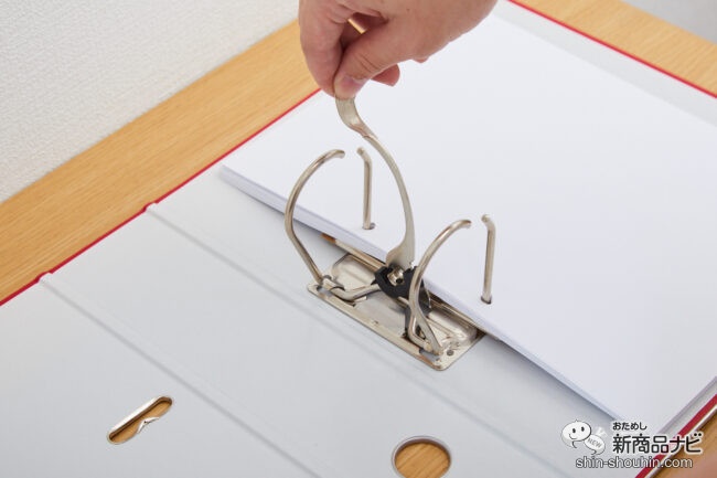 また、右サイドだけでなく、左サイドのレバー部からも書類を差し込むことができる。必要なファイルをピンポイントで取り外したり、チェックしたりできるので、書類整理の際のイライラともサヨナラできそう。