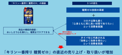 おいしさで心を満たし、糖質までケアできる「キリン一番搾り 糖質ゼロ」の価値が共感を得ているようです。