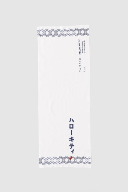 日本のお祭りで配られる昔ながらの“名入りてぬぐい”のような、やさしく懐かしさを感じるデザイン。ハンカチとしても、風呂敷のように小物を包んでも、細く畳んでゆかたの衿に掛けスタイリングのポイントにしても◎