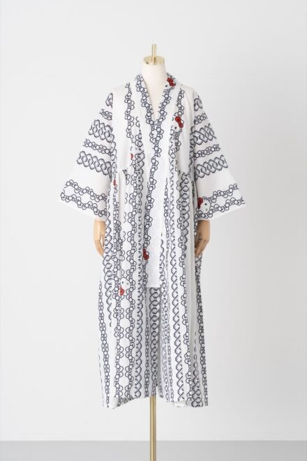 2020年にKIMONO by NADESHIKOとkeisuke kandaが発表した洋服の上からさっと羽織れて自由に着こなせる「きものドレス」。今回はYAMATO Lab.スペシャルバージョンとして展開。ドレスのように裾がたっぷりと広がるデザインは、着姿をより自由に楽しませてくれます。